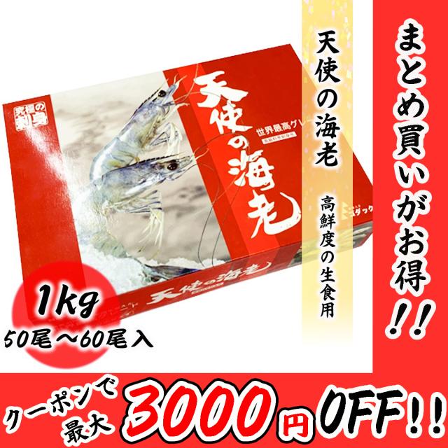 天使の海老 50/60 生食用 1kg 50尾〜60尾入り エビ 海老 刺身 しゃぶしゃぶ 生食 化粧箱 無添加 お取り寄せ ギフト 食品 冷凍便 プロ愛用 業務用 生食 冷凍 高級 海鮮