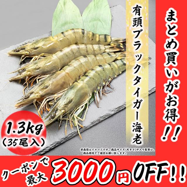 大サイズ 有頭海老 35尾 1.3kg ブラックタイガー BT ブラック 海老 エビ お取り寄せ 食品 冷凍便 プロ愛用