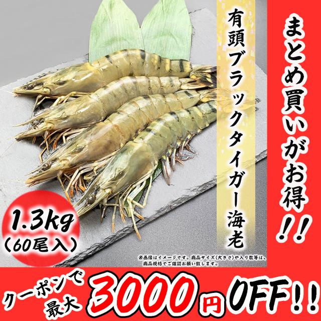 有頭海老 60尾 1.3kg ブラックタイガー BT ブラック 海老 エビ お取り寄せ 食品 冷凍便 プロ愛用