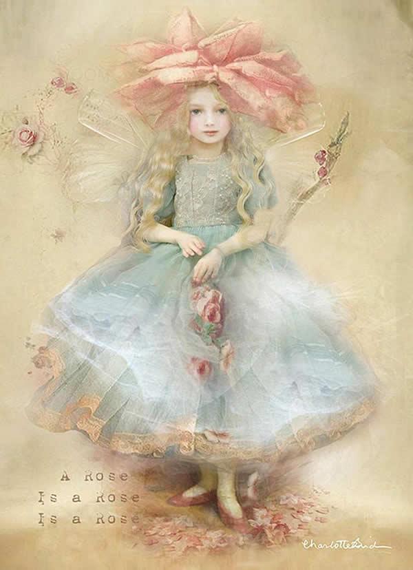 天使 妖精 絵画 「ローズ ペタル フェアリー」グリーティング メッセージ カード フェアリー エンジェル ファンタジー フォトグラフ アート ヴィクトリア調 ヴィクトリアン調 ビクトリアン調 ビクトリア調 シャーロットバード イギリス 英国製 Charlotte Bird