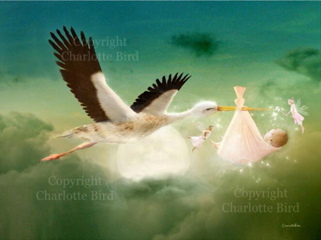 天使 妖精 絵画 ザ ギフト (コウノトリが運んできた贈り物) グリーティング メッセージ カード フェアリー エンジェル フォトグラフ アート ヴィクトリア Charlotte Bird シャーロットバード イギリス 英国 メッセージカード