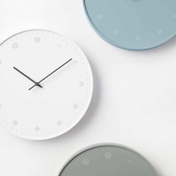 数字によってではなく、異なる尺度を用いた壁掛け時計のシリーズ。