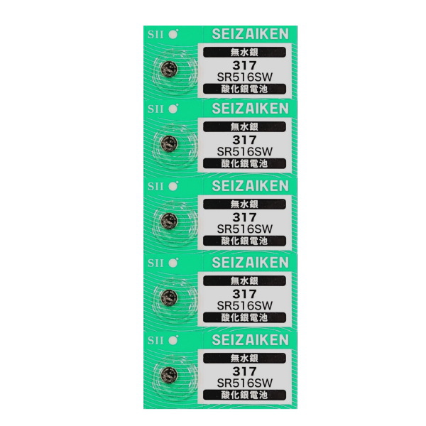 送料無料 腕時計 交換用電池 SR516SW 317 SB-AR 280-58 酸化銀電池 セイコーインスツル 日本製 お得な1シート5個セット ネコポス便対応品