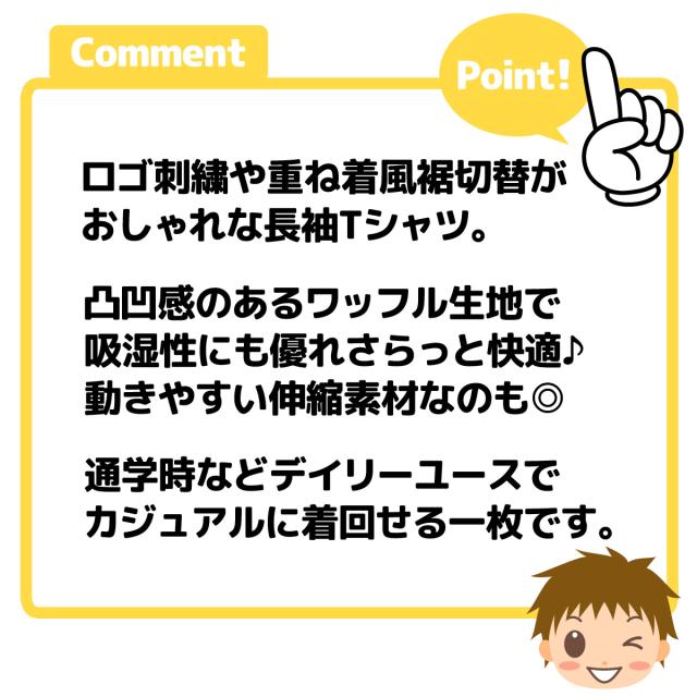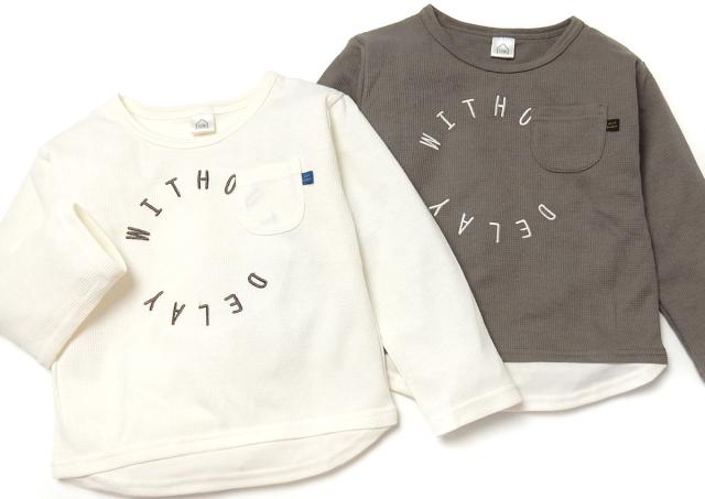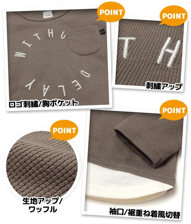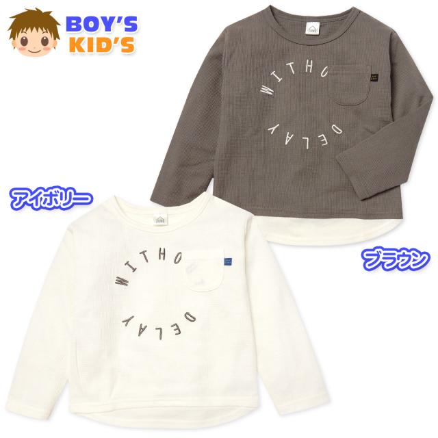 【送料無料】男児 キッズ ワッフル 長袖 Tシャツ ロゴ刺繍 胸ポケット 重ね着風裾切替 伸縮性 子供服 男の子 jt-0174【メール便対応】