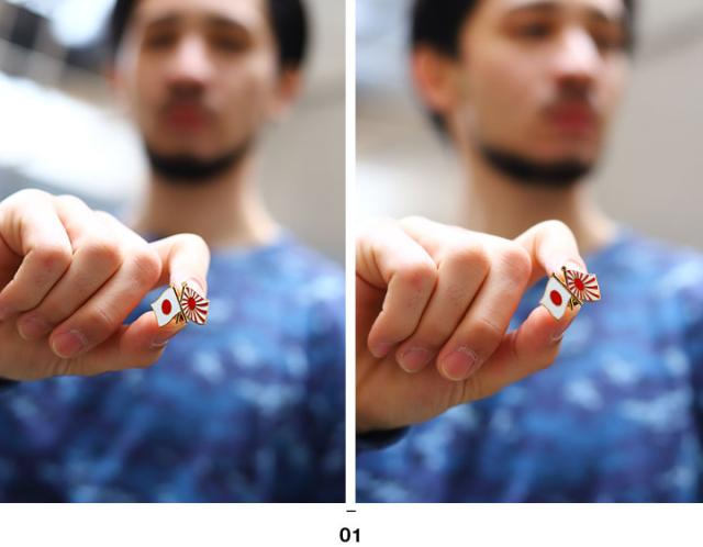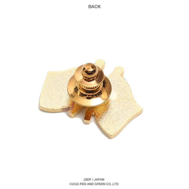 海上自衛隊艦艇の国籍マークとして使用されている日本国旗の日章旗(日の丸)と旭日旗(きょくじつき)をクロスしたデザインのピンバッジが登場!