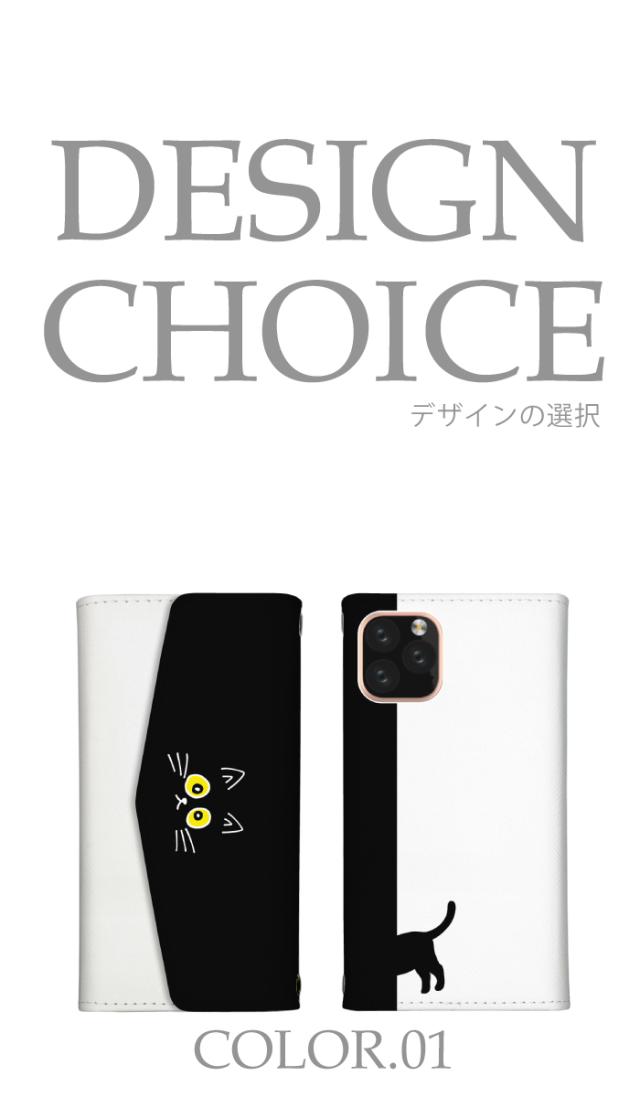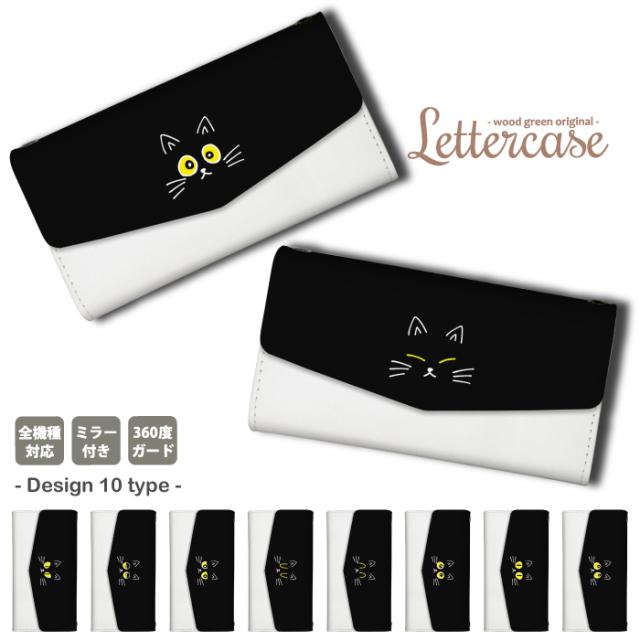 スマホケース iPhone 8 アイフォン8 ケース カバー ショルダー 鏡付き 可愛い おしゃれ 肩掛け 黒猫 ねこ 猫 モノクロ シンプル キュート カジュアル 送料無料