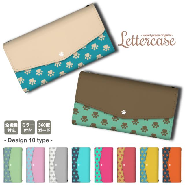 スマホケース HTC 10 HTV32 HTC 10 HTV32 ケース カバー ショルダー 鏡付き 可愛い おしゃれ 肩掛け 肉球 ねこ いぬ パターン チョコミント くすみ 送料無料
