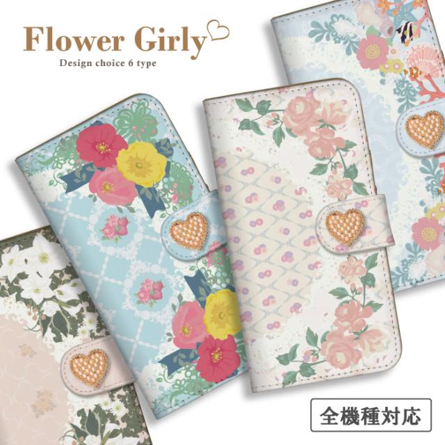 iPhoneはもちろん、GalaxyやAQUOSなどをはじめ最新アンドロイドにもほぼ全機種対応!女の子が大好きな、お花とレースのデザイン。ベルト部分にはハートの形のコンチョが付いてオシャレ♪