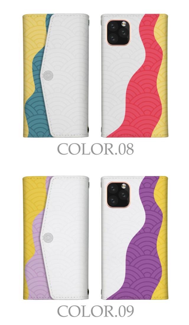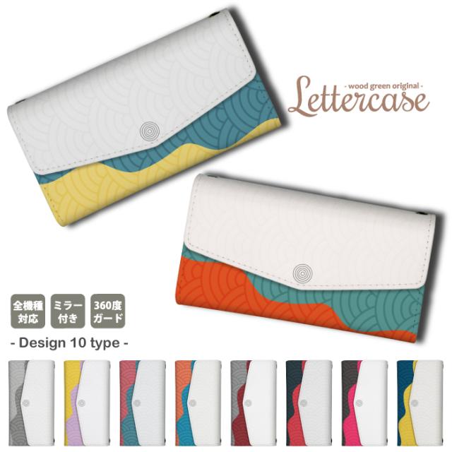 スマホケース Disney Mobile F-07E ディズニーモバイル F-07E ケース カバー ショルダー 鏡付き 可愛い おしゃれ 肩掛け 和柄 波 和風 日本 くすみカラー シンプル 送料無料