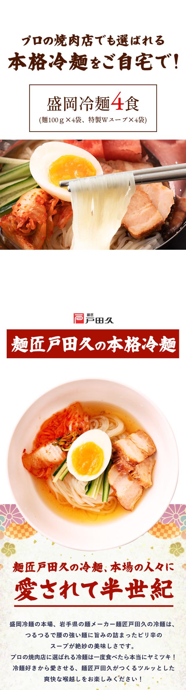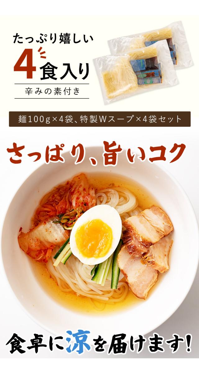 本場盛岡冷麺 4食セット スープ付き 送料無料 コシの強い極太麺と特製スープが絶品!お取り寄せグルメ 冷やし麺 ギフト