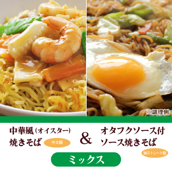 | 【オタフクソース付ソース焼きそば】細ストレート麺90g×6袋、 オタフクソース6袋 【中華風焼きそば】中太麺90g×6袋、 オイスターソース6袋 【2種焼きそばミックス】オタフクソース(細ストレート麺90g×3、オタフクソース3袋)&中華風(中太麺90g×3、オイスターソース3袋) |