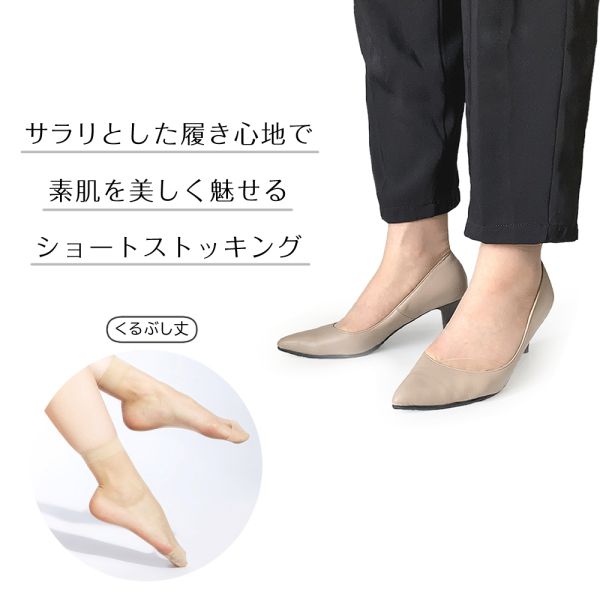 パンツスタイルにマッチするくるぶし丈のショートストッキングです。
