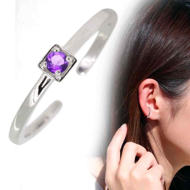 イヤーカフ イヤカフ レディース プラチナ 片耳用 アメジスト イヤリング シンプル