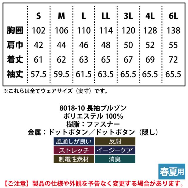 桑和 SOWA 作業服 春夏用 8018-10 長袖ブルゾン 4L