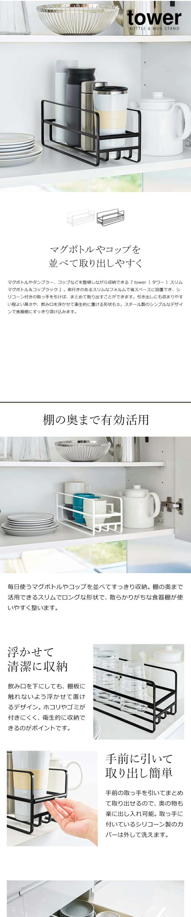 [ スリム マグボトル&コップラック タワー ]山崎実業 tower ラック キッチン収納 食器棚 収納棚 食器 マグボトル コップ グラス 収納 スリム 引き出し カウンター収納 スタンド 北欧 おしゃれ シンプル yamazaki ブラック ホワイト 5643 5644