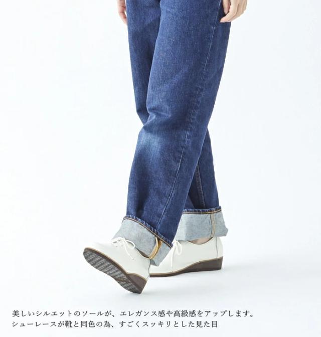 上品な印象を醸し出す、シンプルなデザインのレースアップシューズ。ゆったり幅広なのに スッキリ美しく見える4Eの木型。自慢のオリジナルソフトレザーは、足を包み込むような柔 らかな履き心地。履いた瞬間、軽い!とびっくりする超軽量設計。