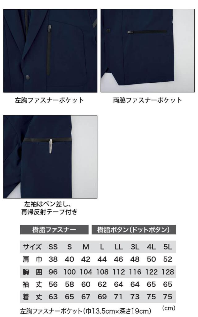 C.ZONE クロスゾーン テーラードジャケット 2518 XEBEC ジーベック 作業着 作業服 サイズSS〜3L