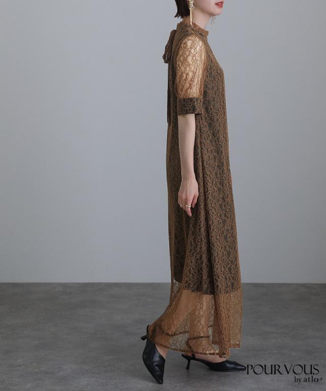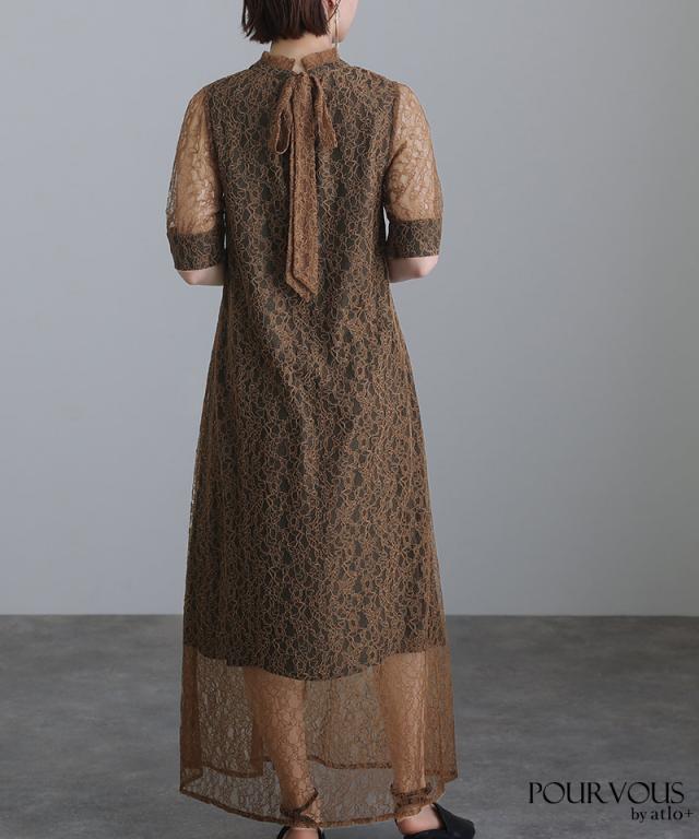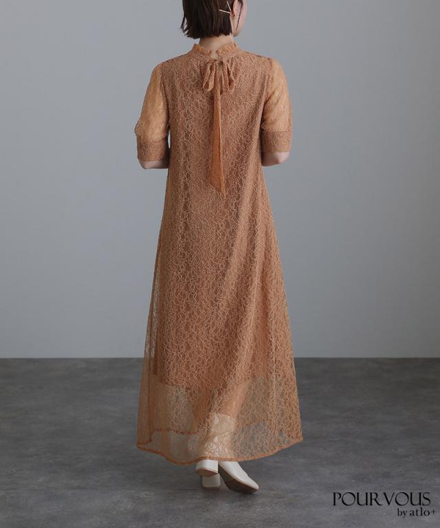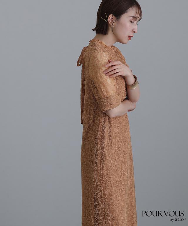 バックリボンレースワンピース【109221316】10代・20代・30代・40代・50代ドレスワンピ・フォーマルワンピ・服装・ワンピース・ドレスカジュアル・ブランド・七分袖・半袖・ロング・膝丈・薄手・厚手・無地・刺繍・脚長効果・伸縮性・キレイめ・着やせ・体型カバー・スタイルアップ・レース・リボン・ドレープ・小さいサイズ・3Lや4L・かっこいい、かわいい・即日発送・送料無料・結婚式・婚活・披露宴・顔合わせ・発表会・演奏会・二次会・同窓会・お呼ばれ・食事会・謝恩会・親族・七五三・お宮参り・冠婚葬祭・弔事・女子会・韓国・デート・入学式・卒業式・入園式・卒園式・ママ・ピアノ・マタニティー・セレモニー・セレブ・パーティー