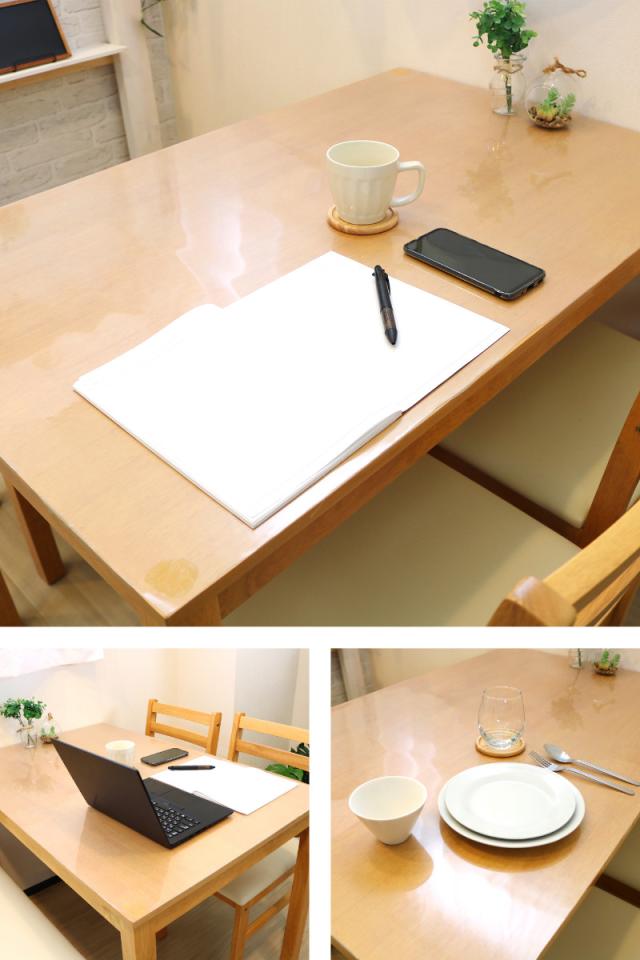 大切なテーブルを保護するために欠かせないテーブルマット。お食事時の食べこぼし汚れ防止にはもちろん、お子様のリビング学習での鉛筆汚れ防止にも便利です。光学式マウスにも対応しているので、リビングでの在宅ワークにも活躍してくれます。