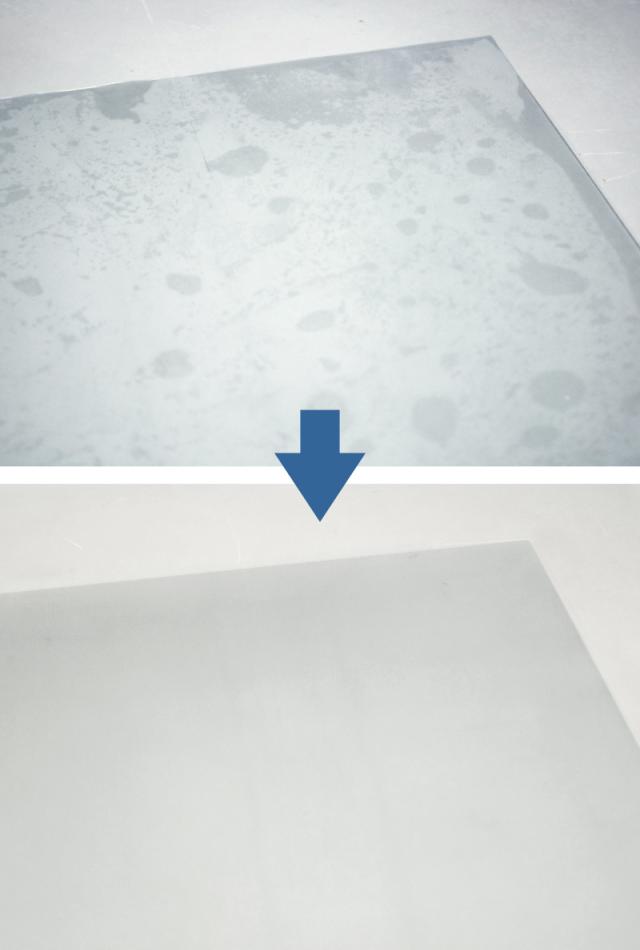 特殊加工が施されているので、気泡が入るのを防いでキレイに敷くことができます。ビニール製で防水性や耐油性に優れているので、お手入れもサッとひと拭きでラクラクです。