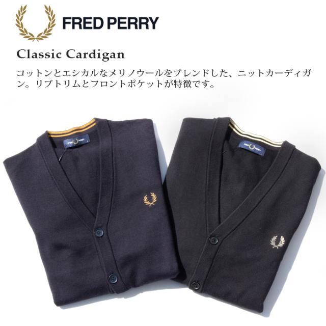 FRED PERRY フレッドペリー クラシックカーディガン [Lot/K9551] カーディガン 定番 おしゃれ メンズ 男性 大人 アメカジ ストリート きれいめ ゆったり ブランド シンプル 丈夫 頑丈 タフ プレゼント 黒 ブラック ネイビー