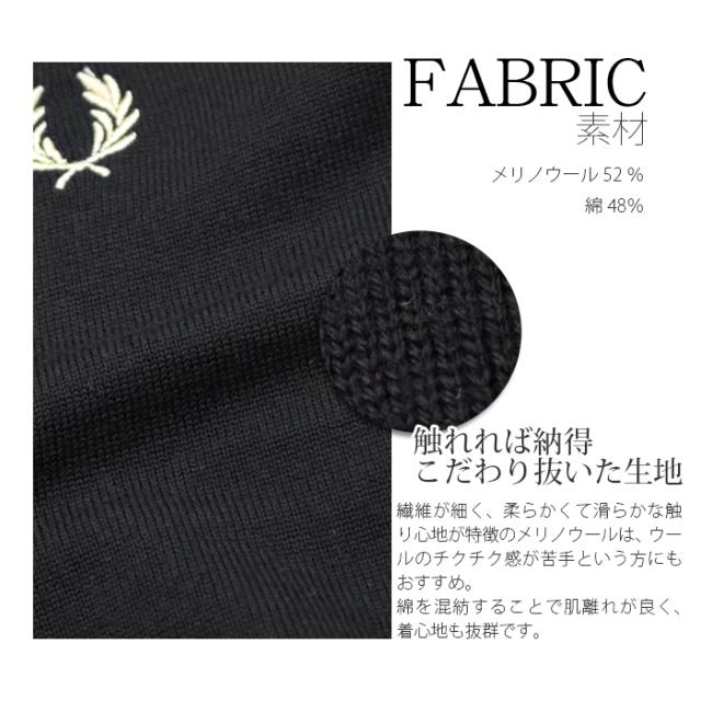 首元にティップライン、胸にはフレッドペリーを象徴するローレルリースの刺繍が施されています。