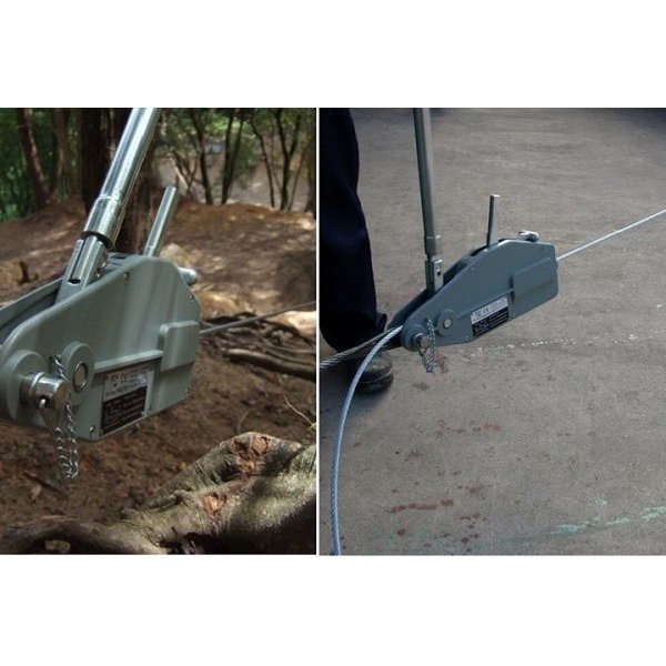 ●ワイヤーロープを本体に巻き取らないため色々な方向に引っ張ることができ様々な場所で使えます