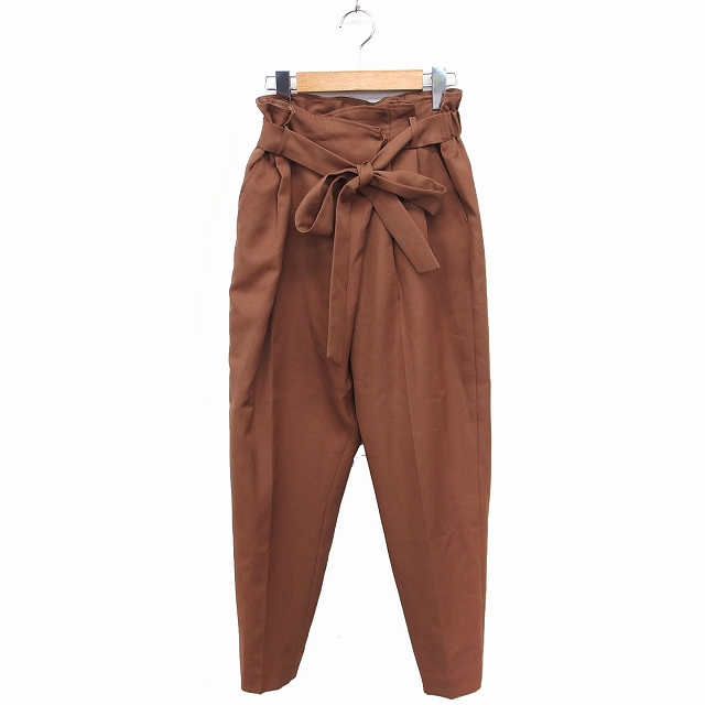 【中古】スピック&スパン ノーブル Spick&Span Noble イージー テーパードパンツ リボン 斜めタック 無地 36 ブラウン