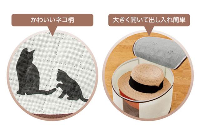 ネコのシルエットがワンポイント♪帽子の収納に悩みがちを解消する。帽子収納ケース!!