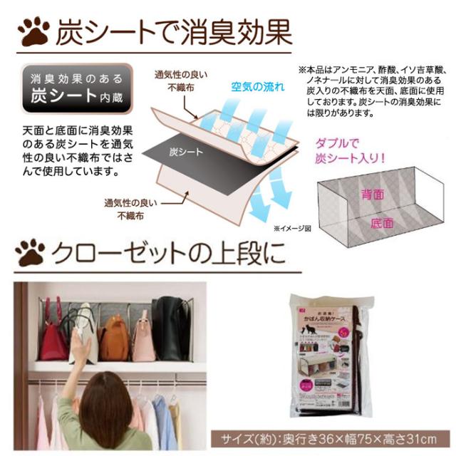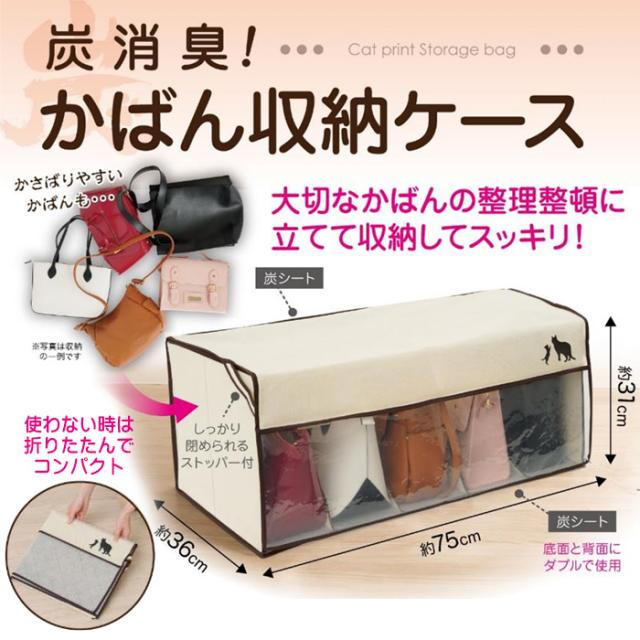 ・かさばるかばんもコンパクトに収納できる収納ケース!側面と背面に消臭効果のある炭シート入り。