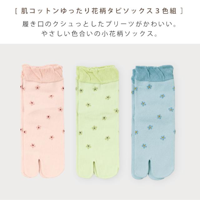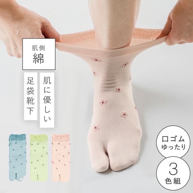 履き口 ゆったり 足袋ソックス 靴下 レディース 【3色組】22-25cm 春夏 薄手 花柄 花 おしゃれ 【 口ゴムなし みたいな履き心地】 ゆるめ 口ゴムゆったり 締め付けない むくみ 介護 高齢者 シニア 足のむくみ 肌コットンゆったり花柄タビソックス 跡がつかない