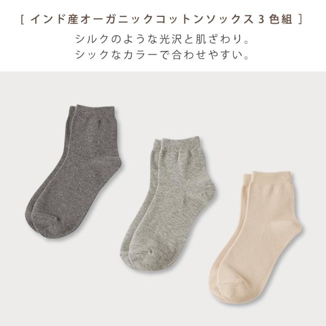 インド産のオーガニックコットン使用。合わせやすいシックカラーの3色組。