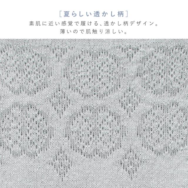爽やかな、透かし柄デザイン。薄手にこだわった涼しげスニーカー丈ソックス素肌に近い感覚で履ける、夏らしい透かし柄デザイン。薄いので肌触り涼しい。