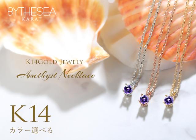 アメシスト ネックレス K14 ゴールド ネックレス ハワイアンジュエリー ネックレス 14K K14ゴールド 14金 イエローゴールド ピンクゴールド ホワイトゴールド 2月誕生石 一粒 ギフトラッピング可能 BYTHESEA プレゼント バレンタイン 【品番:CG-GP501-2】