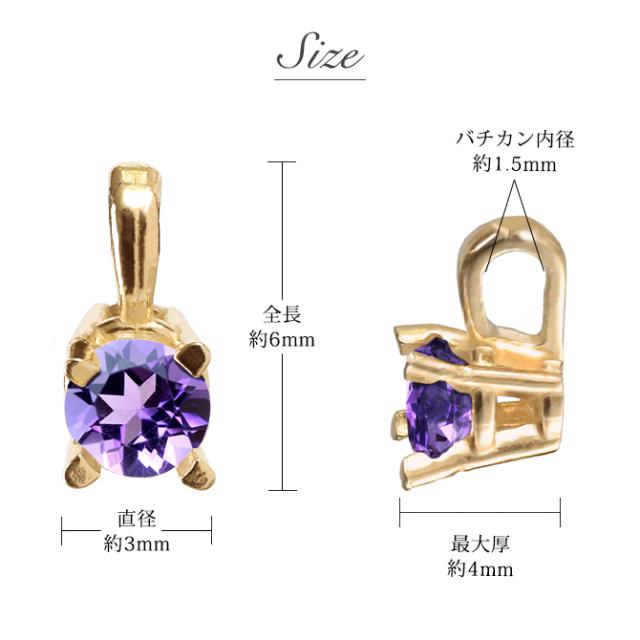 ◆寸法:全長6mm 幅3mm 最大厚4mm バチカン内径1.5mm誕生石の直径:約3mm