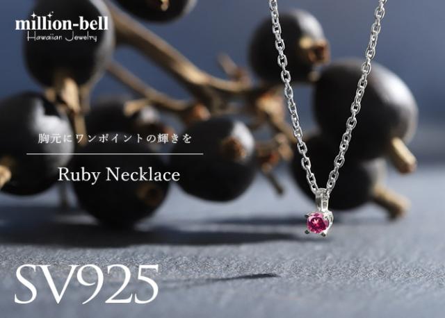 ルビー ネックレス シルバー925 ネックレス 7月誕生石 一粒 銀 チェーン 長さ選べる 40cm 45cm 50cm ギフトラッピング可能 シンプル 華奢 上品 ミリオンベル 彼女 妻 女性 レディース 誕生日 プレゼント バレンタイン 【品番:CG-SP-29051SV-7】
