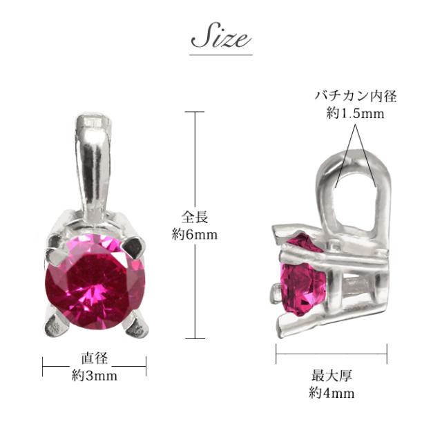 寸法:全長6mm 幅3mm 最大厚4mm バチカン内径1.5mm誕生石の直径:約3mm