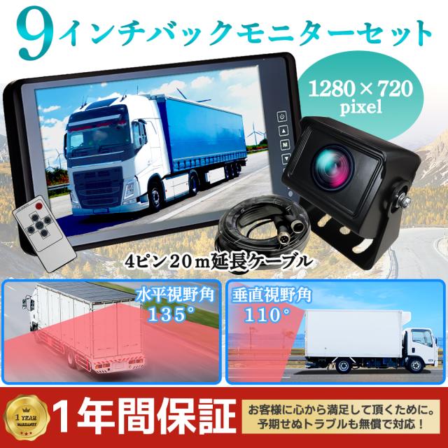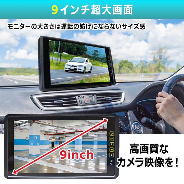 9インチ バックミラーモニター 拡光レンズ バックカメラセット クレーンカメラ バックミラーモニター 12/24V対応 トラック車載 送料無料