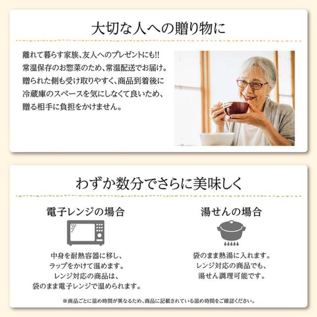 ●長期常温保存可能で、災害時の非常食やストック(備蓄)にも便利。贈り物や献立にお困りの時・おかずの足しにおすすめです。