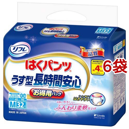 リフレ はくパンツ うす型 長時間安心 M【リブドゥ】(32枚入*6袋セット)[大人紙おむつ パンツ]