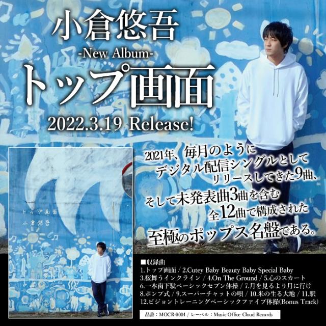 日本のシンガーソングライター "小倉悠吾" 1stフルアルバム「トップ画面」は、