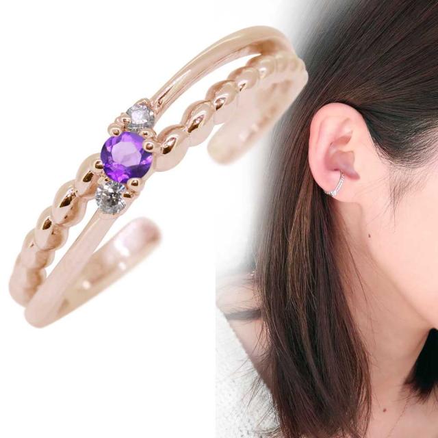 イヤーカフ レディース イヤカフ シンプル 片耳 10金 2月誕生石 アメジスト イヤリング
