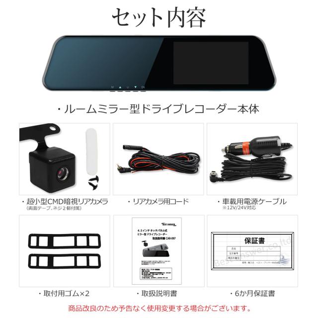 取付カンタン ドライブレコーダー ミラー型ドラレコ タッチパネル 前後同時録画 前後カメラ バックカメラ リアカメラ搭載 4.5インチ ドラレコ ミラー 送料無料