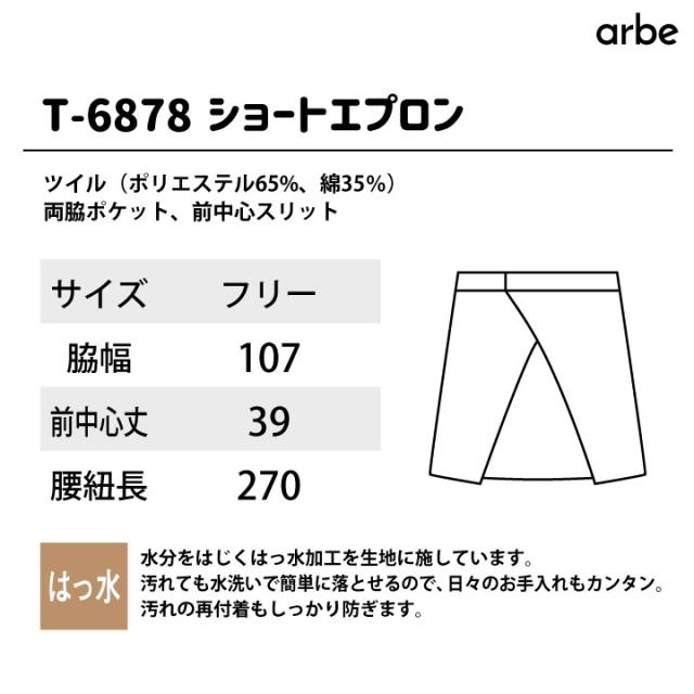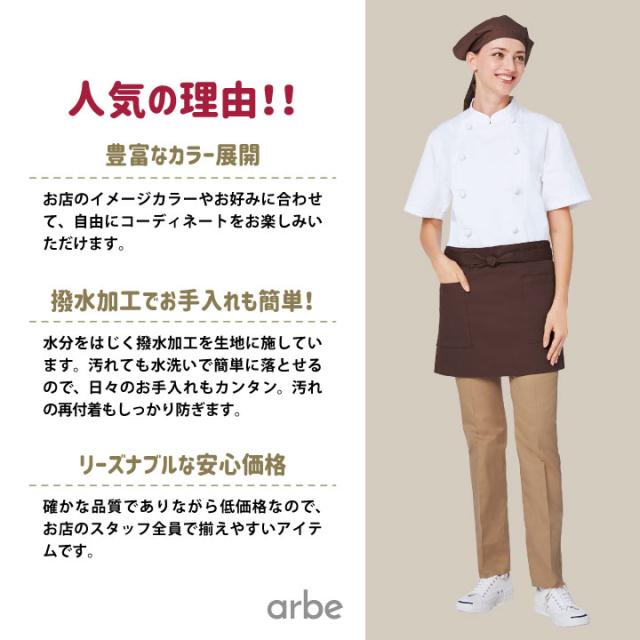 ショートエプロン 39cm丈 T-6878 アルベ CHITOSE チトセ 撥水 厨房服 レストラン カフェ ソムリエ 居酒屋 飲食店 サービス ユニフォーム エプロン arbe ネコポス ct-t6878