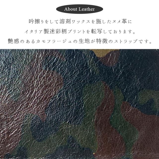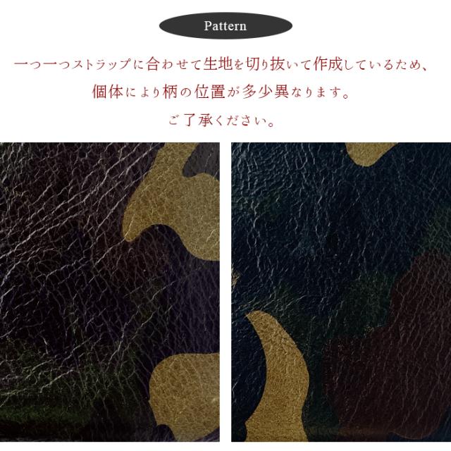 ◆ 本革 カモフラージュ ストラップ ◆ご要望多数だったストラップがついに登場!スマホケースに付けてストラップに手を通すと落下防止としてお使い頂けます。また、デジカメやパスケースなどの幅広いアイテムとの相性も抜群です。