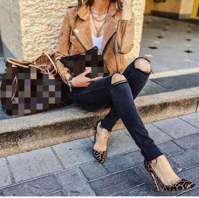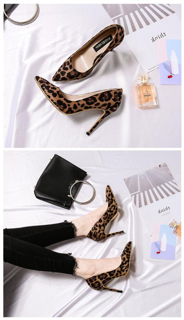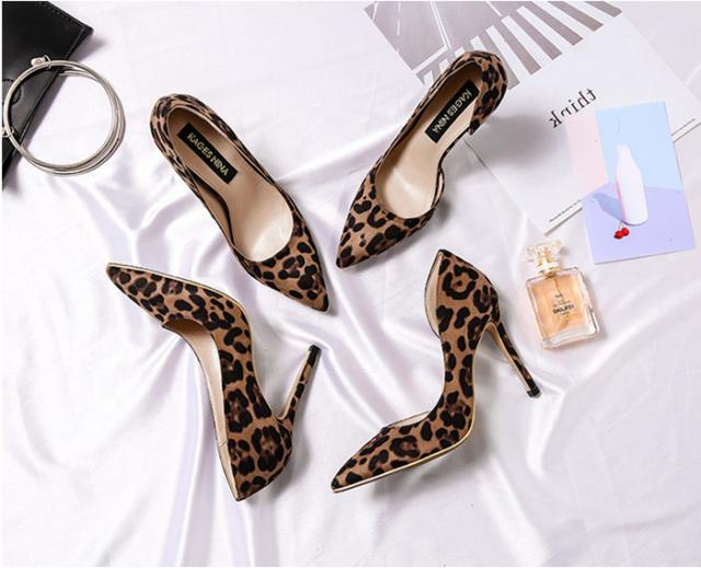 ●定番のヒョウ柄ハイヒールパンプス、フェミニンな印象をプラスしてくれます。