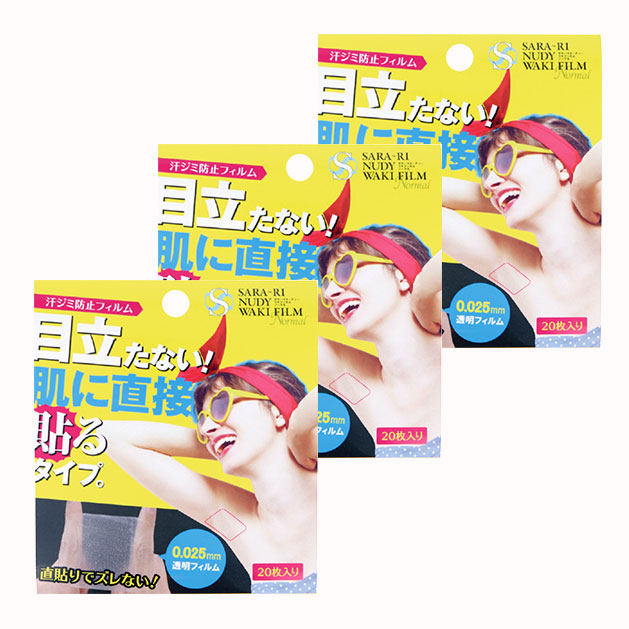 脇汗パッド 脇汗シート ワキ汗 ワキガ 腋臭 直貼り 汗染み防止 汗を止める 汗対策グッズ / サラーリ ヌーディー ワキフィルム ノーマル 20枚×3セット