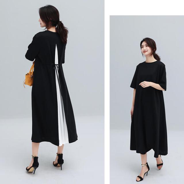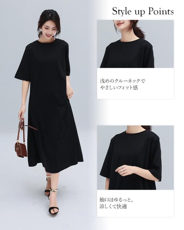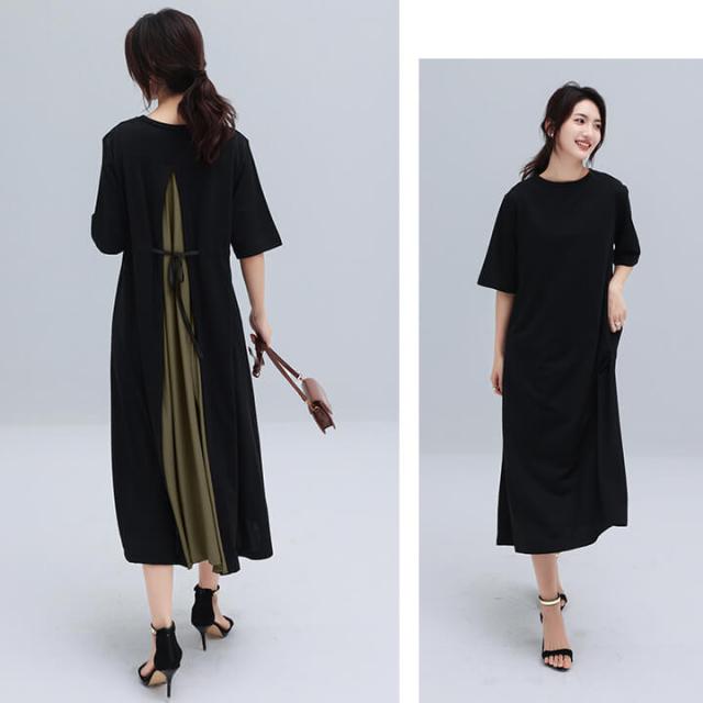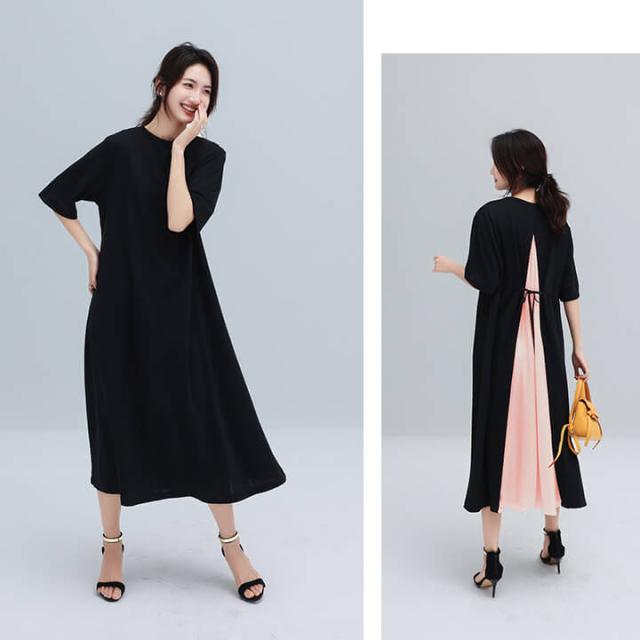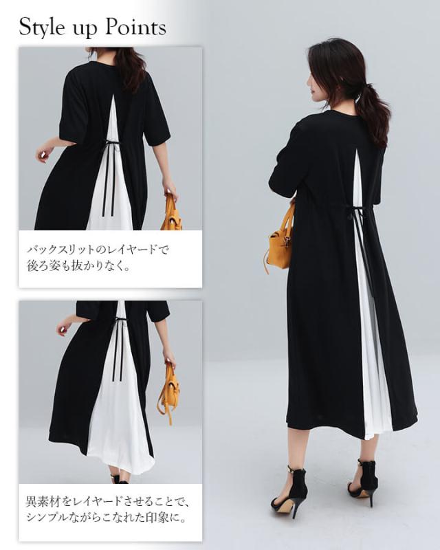 一枚で決まるバックスリット入り レイヤード風ワンピース。
