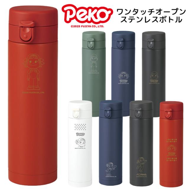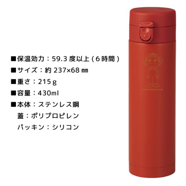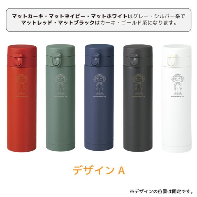 ペコちゃん 不二家 ステンレスボトル 430ml 水筒 真空二重 軽量ボトル プレゼント デザイン おしゃれ 保温 部活 マグボトル タンブラー くすみカラー マット 赤 黒 紺 緑 カーキ 白 zakka030