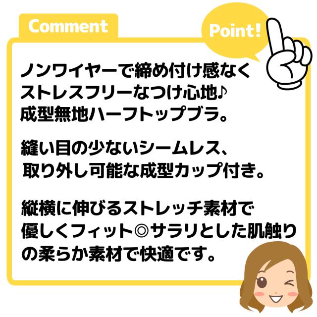 【送料無料】レディース 婦人 成型ハーフトップブラ ノンワイヤー シームレス カップ取り外しOK 下着 yg-1149【メール便対応】